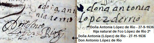Antonio López de Río (hijo de Francisco Baltasar de Río) y su mujer Antonia López de Río (hija natural de Francisco López de Río el 2º). En los capítulos matrimoniales ella suprime el López; pero sí lo utilizó cuando para ajustarlos solicitó al corregidor que nombrase a Juan de Río su curador.