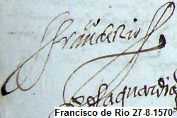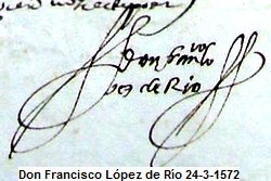 Francisco de Río tomará el apellido 'López de Río' al otorgarle el rey Felipe II el título de Alférez mayor de Soria y su provincia que compró a Francisco de Garnica, y antepondrá el Don en la firma: (Fco. López de Río 1º)