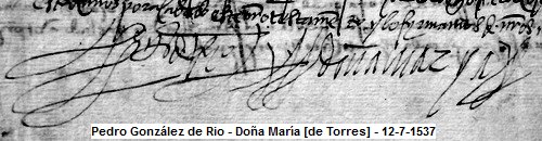 1537 - En el testamento otorgado por Pedro González de Río y su mujer doña María de Torres hacen constar: