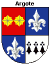 En la edición de 1588 (pag.218v) cita: a quartel en el primero dos Estrellas azules en campo de oro, y en el ultimo tres Armiños negros en campo de plata, y en los otros dos un Lirio de oro en campo azul en cada uno.