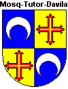 cuartelado 1º y 4º castillo de oro sobre campo de gules; 2º y 3º armas insignia del linaje de Santa Cruz.