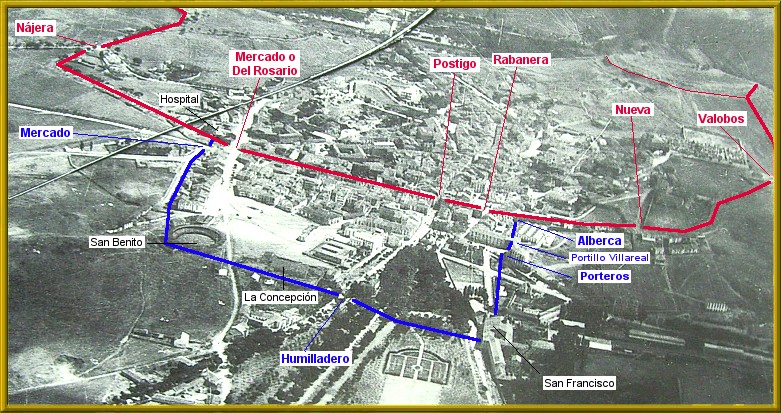 Bº de la TejeraY asimismo se aprecia su ubicación en la fotografía de 1935 que mostramos en el artículo sobre "La cerca del arrabal de Soria", en la que indicamos la posición de las puertas de la muralla y de dicha cerca.