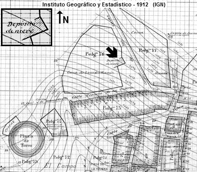 En el plano elaborado por el Instituto Geográfico y Estadístico en 1912 (revisión de 1914) se representa en este lugar el Depósito de Nieve.
