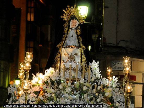 Incluimos unas brevísimas alusiones a las cofradías y pasos que procesionan en la actualidad; y agradecemos a José Damián Ferrero Monge su información sobre este tema, completando la publicada en Cofradías de Semana Santa en la provincia de Soria (obra de la que es coautor con J. Martínez), sin la cual hubiéramos cometido algunos errores de bulto. También agradecemos a Tomás Pérez Frías la autorización para reproducir el Ecce Homo de la ermita de La Soledad, fotografía de Florentino Martín; y a la Junta General de Cofradías de Semana Santa de Soria las fotografías que nos han proporcionado.