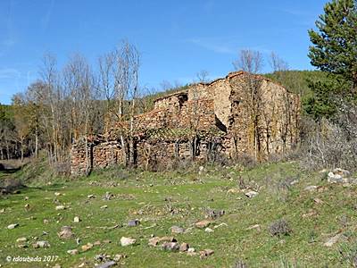 En las dos ocasiones que subí con José Mari Carrascosa hasta las ruinas del templo, lo pudimos hacer cómodamente. Parte del recorrido lo hicimos en coche. Se toma el camino que sale del cementerio y conduce a Acrijos. Dejamos el coche en Horcajo -Orcajo u Orcaxo- uno de los lugares a donde iban a lavar las mujeres, conocido como “las pozas” por donde discurre el río Horcajo y se junta con el río de la Virgen. Los pocos olmos han ido desapareciendo y la vegetación es de zarzas, rebollo y arces. Entre ella aparecen los restos de lo que fuera ermita de Nuestra Señora del Monte y sus edificios anejos, el mejor conservado es la casa del ermitaño o del santero.
