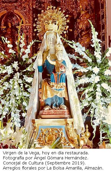 Hubo un momento en que esta rica y típica tradición se perdió.  Sin la protección de los santeros que se habían sucedido sin interrupción hasta este momento y ante la proliferación de robos de arte en ermitas e iglesias, razones de seguridad aconsejaron a retirar de este Santuario, que se abre a la vega del Nágima, la imagen de la Virgen de la Vega; talla gótica de finales del siglo XIII o principios del XIV que mide 1,06 m. De altura, repintada en manos y cara, seccionada en la parte superior para la colación de una corona.  El repintado obedece, a que siempre fue vestida, últimamente se le han retirado las vestiduras que se van a recoger en breve en un mueble-exposición en la iglesia.  También pudo influir en su supresión el lamentable estado del complejo: ermita y viviendas.