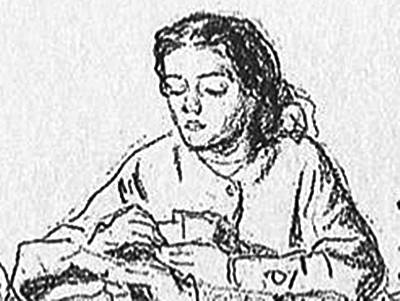 pie, la sirvienta, cercana a lo que parece ser una chimenea (se nota una