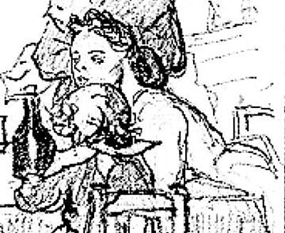 vaso de vino. La niña reclama la atención de la mujer, pero esta le hace