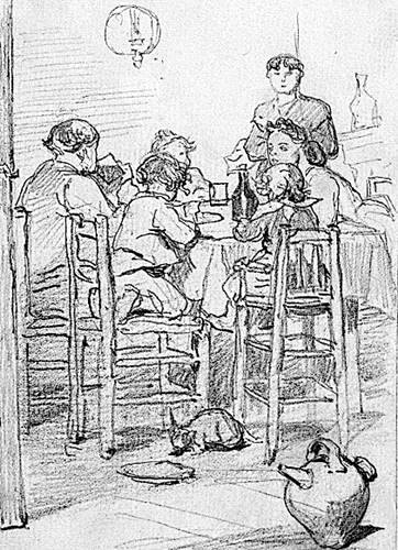 lo que acababan de comer. La figura del adulto de espaldas, se supone