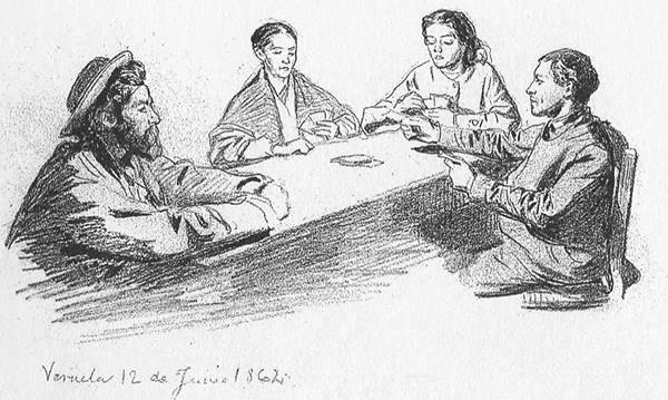 (quizá el guiñote o quizá una simple brisca). Se tratan los cuatro