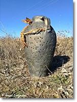 barro negro con tapa y con agujeros, grande como un cántaro, mayor,